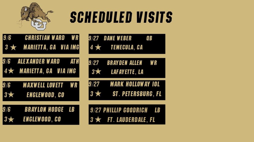 Here is the Recruiting Scheduled Visits as of 9/8/2025.